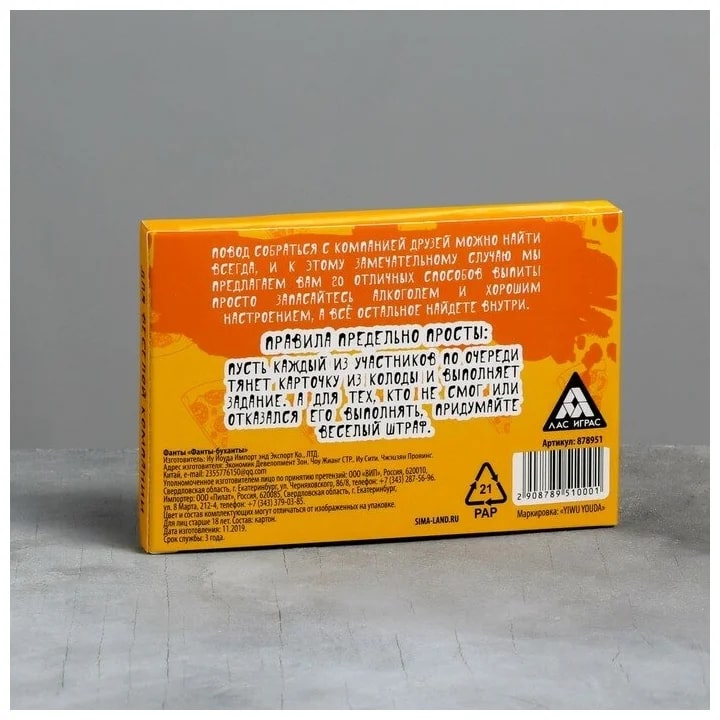Купить игра для компании "фанты буханты" 20 карт от 100 руб. с доставкой до пункта выдачи в Мантурово. Интернет магазин ДекаМаркет. Оплата при получении.